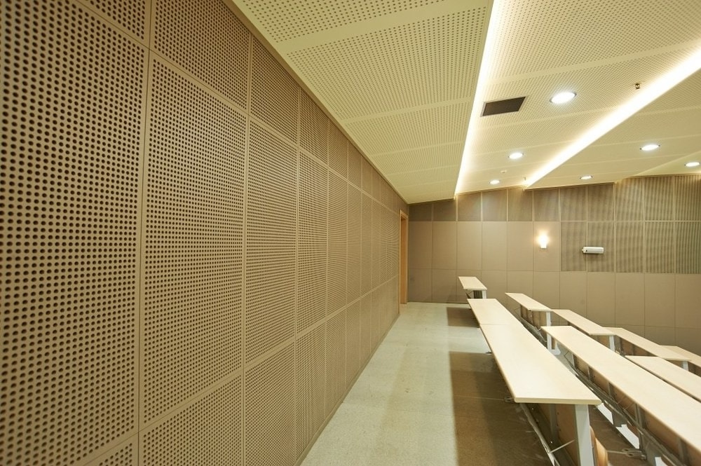 Декоративные перфорированные акустические потолочные панели на основе Гипсокартона Стекломагниевого листа СМЛ Гипсостружечной плиты ГСП и МДФ с большим выбором покрытий по каталогу RAL ПВХ HPL и Шпон